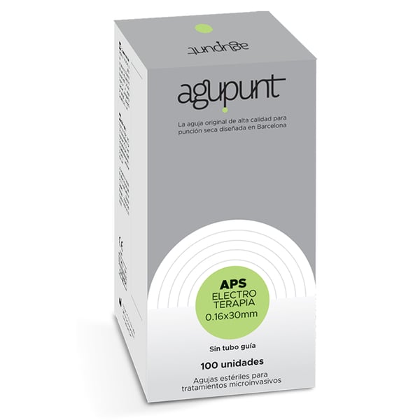 Agupunt Aghi per elettroterapia senza tubo guida . Aghi appositamente progettati per trattamenti di elettroterapia, inclusa la tecnica dell'elettrolisi . Ha una maggiore conduttanza dell'ago, facilitando il transito degli elettroni all'interfaccia ago-tessuto degenerato. Permette all'azione di essere esclusivamente nel tessuto degenerato evitando qualsiasi interazione con il tessuto sano adiacente. Offre una maggiore visualizzazione sotto controllo ecografico , garantendo una corretta applicazione della tecnica nel focus della lesione. Allo stesso modo, presenta una maggiore concentrazione di elettroni sulla punta dell'ago , garantendo un campo elettrico più intenso e, quindi, un maggiore effetto elettrochimico con una dose minore nel tessuto leso. Inoltre, ha una migliore capacità di penetrare nel tessuto cutaneo con meno dolore.