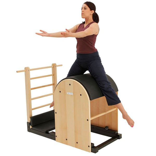 Il Ladder Barrel è progettato per sfidare i muscoli addominali e della vita e rafforzare la colonna vertebrale migliorando la flessibilità. Il nuovo Align-Pilates Barrel with Ladder presenta un telaio rivisto e una solida scala in acero per un look classico. Altri miglioramenti includono una parte superiore imbottita e rivestita per un maggiore comfort e l'aggiunta di ruote per un facile spostamento.