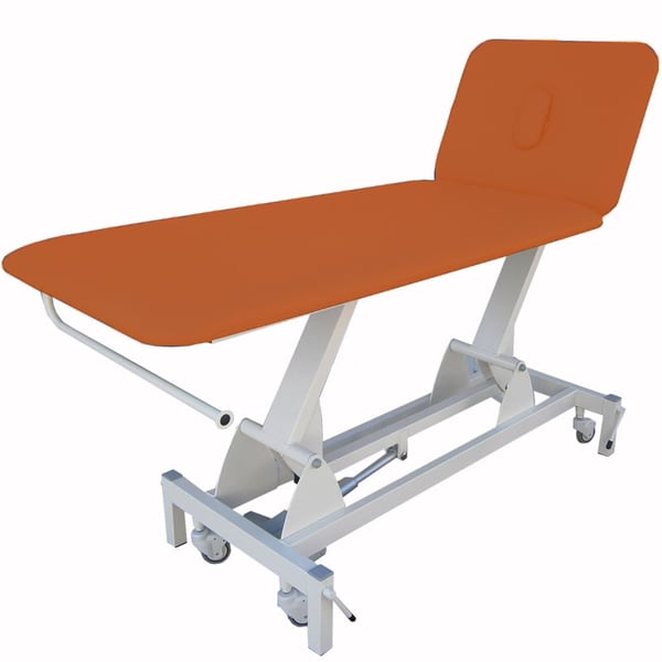 -Schienale tramite cilindro idropneumatico con leva sul lato destro dello schienale, che permette al professionista di adattarsi facilmente alla terapia da eseguire.