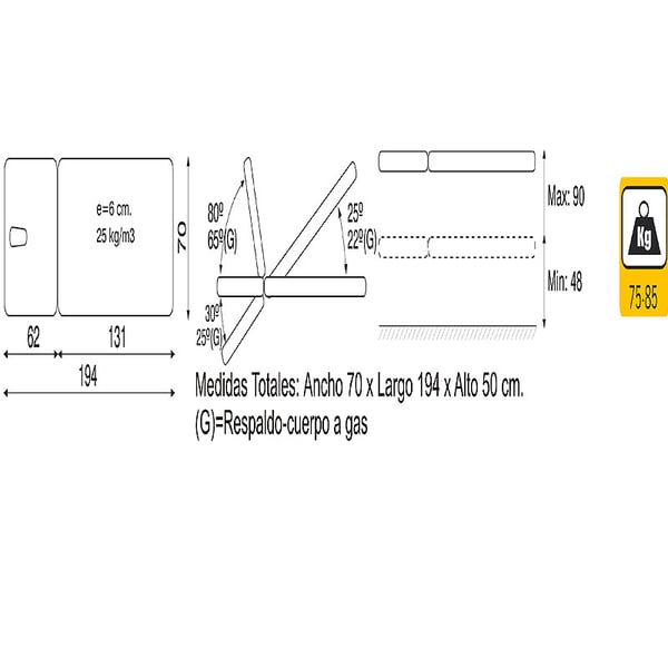 - Peso: 75 kg.