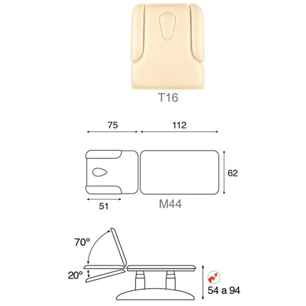 Barella elettrica ecoposturale: Elevazione verticale da 54 a 94 cm, testa inclinabile fino a 90º e due corpi (62x188 cm)