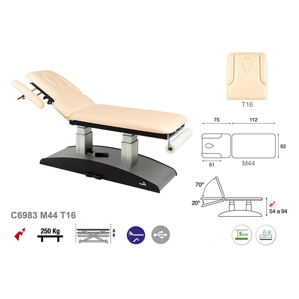 Barella elettrica con elevazione verticale di due colonne, due corpi e testa inclinabile fino a 90º. Inoltre, ha un porta carta igienica incluso. Ha un design semplice, moderno e funzionale. Un altro dei grandi vantaggi che il lettino offre è la sua versatilità poiché è ideale per numerosi campi: fisioterapia, osteopatia, medicina generale, estetica, tatuaggi. Una soluzione perfetta per qualsiasi professionista della salute e dell’estetica.