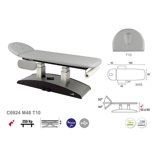 Barella elettrica a due colonne, due corpi ed elevazione verticale con foro facciale e testiera semicircolare. Ha un design semplice, moderno e funzionale. Un altro dei grandi vantaggi che il lettino offre è la sua versatilità poiché è ideale per numerosi campi: fisioterapia, osteopatia, medicina generale, estetica, tatuaggi. Una soluzione perfetta per qualsiasi professionista della salute e dell’estetica.