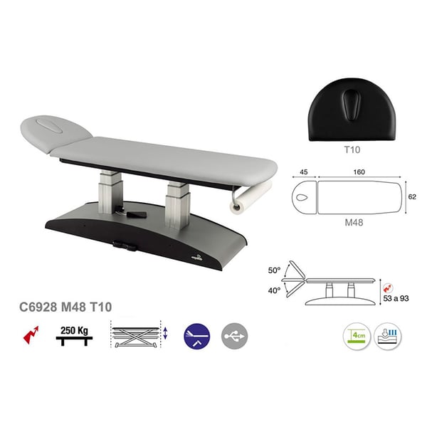 Barella elettrica a due colonne, due corpi ed elevazione verticale con foro facciale ergonomico incorporato. Ha un design semplice, moderno e funzionale. Un altro dei grandi vantaggi che il lettino offre è la sua versatilità poiché è ideale per numerosi campi: fisioterapia, osteopatia, medicina generale, estetica, tatuaggi. Una soluzione perfetta per qualsiasi professionista della salute e dell’estetica.
