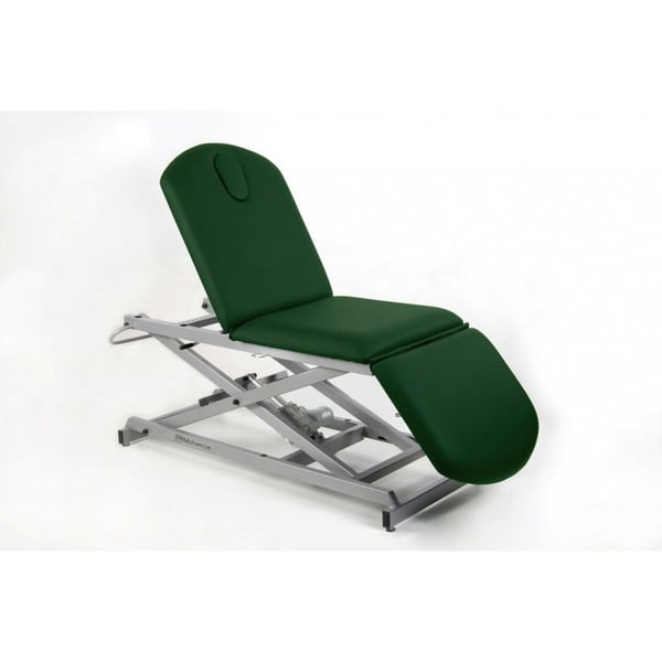 Barella elettrica: tre corpi, tipo sedia, con alzata dritta senza spostamento laterale, con portarotolo e calotta facciale (disponibili due modelli)
