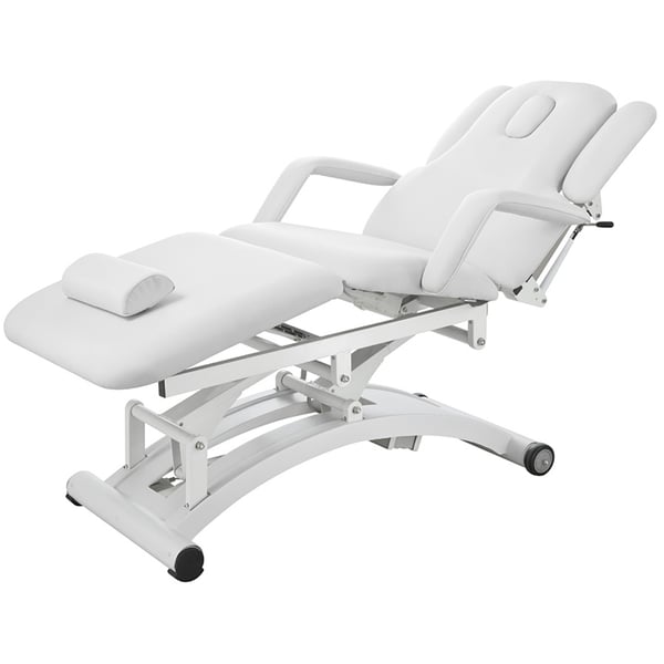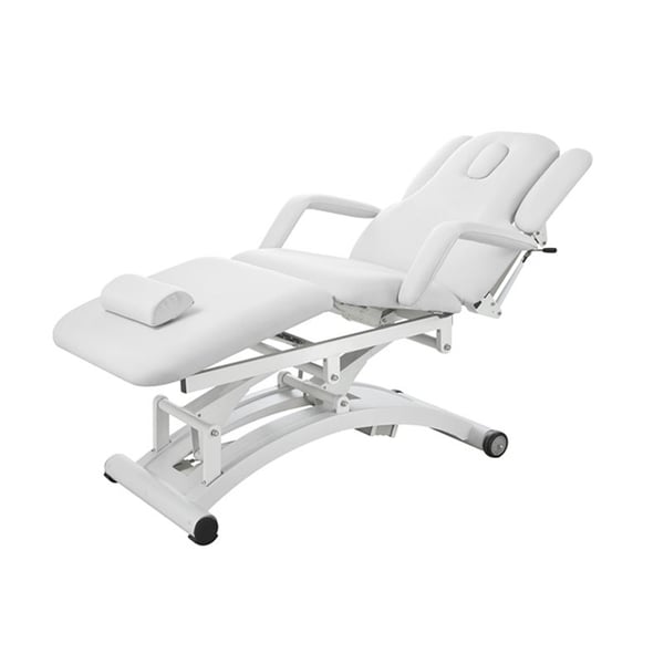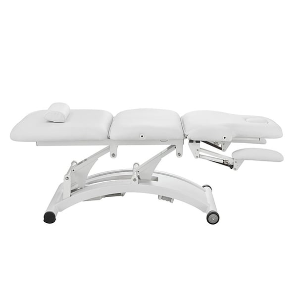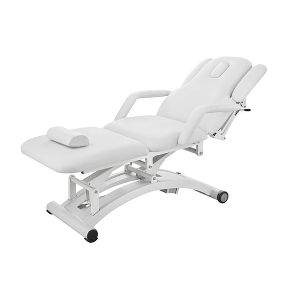 La barella Sphen ha tre motori che offrono elevate prestazioni e hanno il compito di regolare l'altezza, l'inclinazione dello schienale e il modulo centrale con estrema precisione. I pazienti godranno anche di un comfort estremo durante i trattamenti poiché la barella ha un doppio sistema di braccioli e foro facciale.