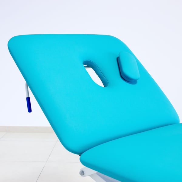 - Nella testiera è incorporato un foro facciale con tappo imbottito per posizionare comodamente il paziente "a faccia in giù".