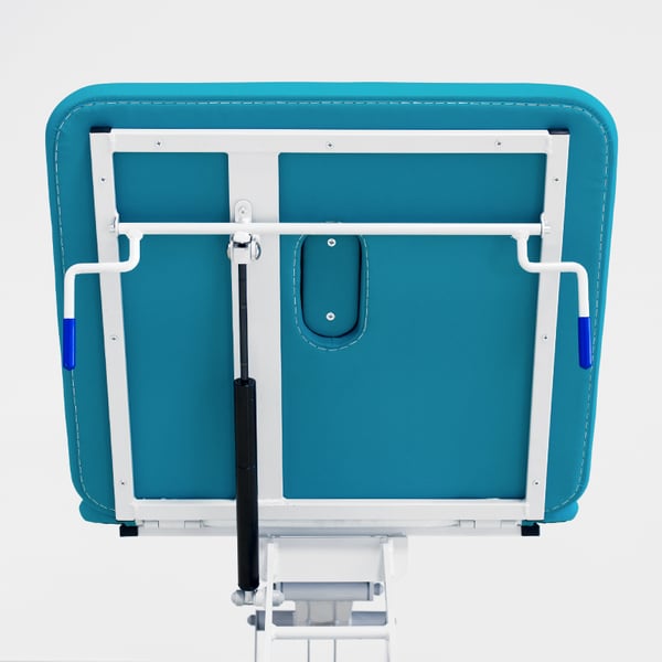 - Ha le gambe più strette rispetto al piano portapaziente ed è progettato per consentire al professionista di avvicinarsi facilmente al paziente senza che nulla possa inciampare.
