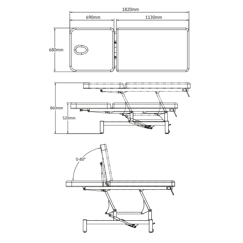 È dotato di due sezioni , uno schienale reclinabile fino a +80° e un'apertura per il viso per un maggiore comfort del paziente. Il rivestimento in PVC ad alta resistenza è disponibile in grigio o blu, con un materasso spesso 5-7 cm che garantisce durata e igiene. Include un portarotolo integrato , ruote bloccabili/sbloccabili e piedini antiscivolo per una completa stabilità durante l'uso.