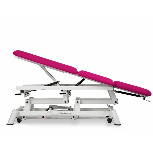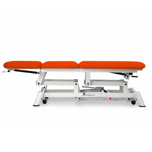 Barella idraulica per osteopatia: tre corpi, con schienale reclinabile negativo, cuffia facciale e ruote a scomparsa (disponibili due modelli)