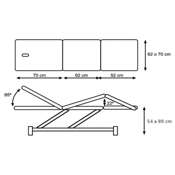 Inoltre dispone di un motore elettrico che permette di regolare l'altezza tramite una pulsantiera. Allo stesso modo, presenta una piega tra la seduta e il poggiagambe per creare la postura che meglio si adatta alle esigenze di ogni trattamento.