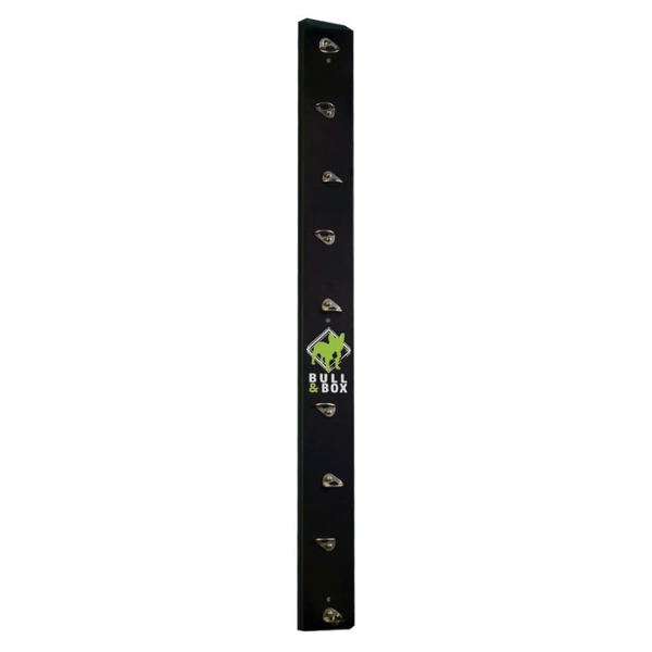 Bull & Box è un sistema di allenamento funzionale progettato per offrire un allenamento completo nel minimo spazio possibile . È costituito da una tavola verticale dotata di punti di ancoraggio strategici e fasce di resistenza , che consente di eseguire un'ampia gamma di esercizi di forza e mobilità.