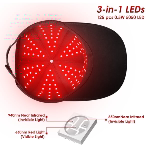 Il cappello per terapia a luce rossa è un dispositivo terapeutico dotato di luci LED rosse e a infrarossi, progettato per stimolare la crescita dei capelli. Agisce utilizzando una terapia luminosa a bassa intensità per energizzare il cuoio capelluto e riattivare i follicoli piliferi , offrendo un'alternativa non invasiva per rallentare la caduta dei capelli e migliorare la salute del cuoio capelluto .