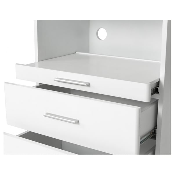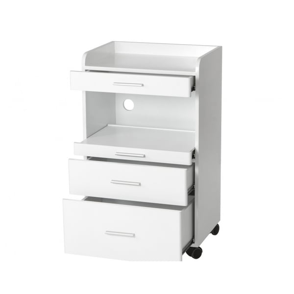 Carrello ausiliario in legno bianco: Dotato di tre cassetti e vano centrale per l'alloggiamento della strumentazione