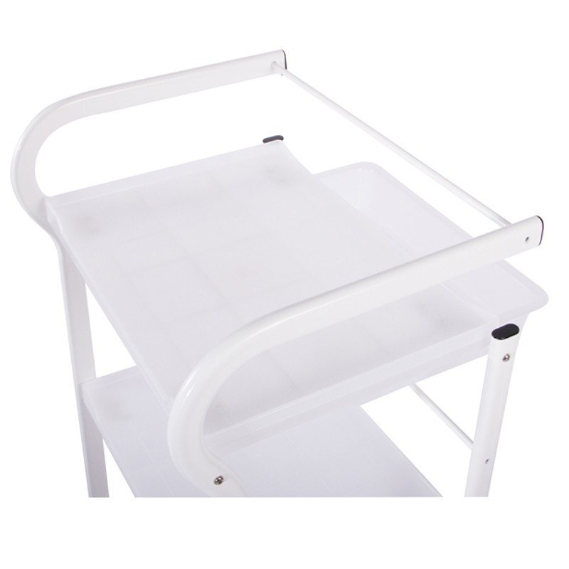 Parte carrello in metallo bianco: dotata di tre ripiani e cassetto estraibile