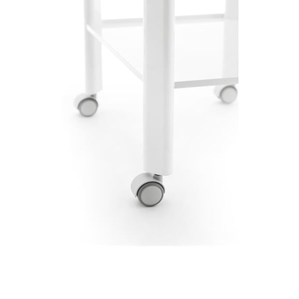 - È un tavolo mobile in acciaio smaltato con 2 vassoi e un cassetto nella parte anteriore.