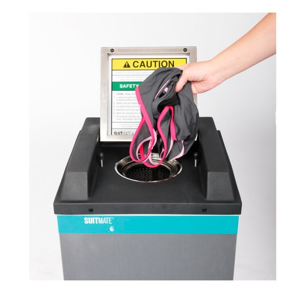 Asciuga costumi Suitmate® indispensabile per gli spogliatoi . Elimina il 99% dell'acqua dai tessuti , mantiene l'igiene negli spazi umidi di centri e piscine, utilizza un esclusivo processo ad alta velocità per evacuare l'acqua e fa in modo che qualcosa di bagnato smetta di gocciolare in pochi secondi.