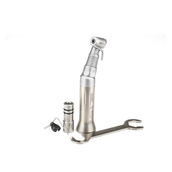 Questo contrangolo ha un grande sbocco nel mercato, poiché viene utilizzato per interventi chirurgici centrali come impianti e riduzioni. Ha un pulsante per poter cambiare più facilmente le frese per il professionista. Offre un'irrigazione esterna che facilita la visibilità in chirurgia. Consiste in un design elegante in acciaio inossidabile. Inoltre, ha una velocità minima di 30 giri/min e una massima di 2000 giri/min.