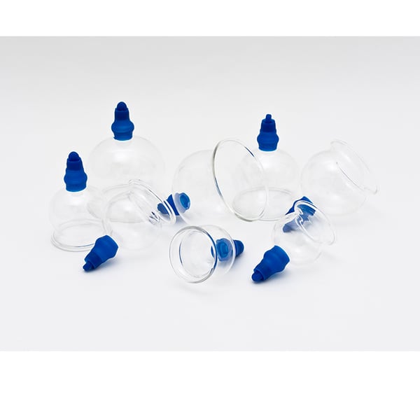 Set di 8 ventose in vetro di alta qualità. Include una pistola in plastica , presentata in una custodia in similpelle.