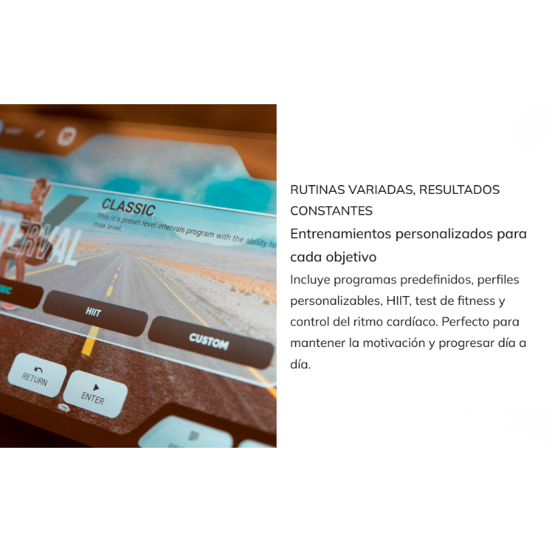 Inoltre, integra la connettività Bluetooth FTMS , che consente di sincronizzare la bici con applicazioni di allenamento come Zwift o Kinomap , offrendo percorsi virtuali e sessioni interattive che aumentano la motivazione dell'utente.