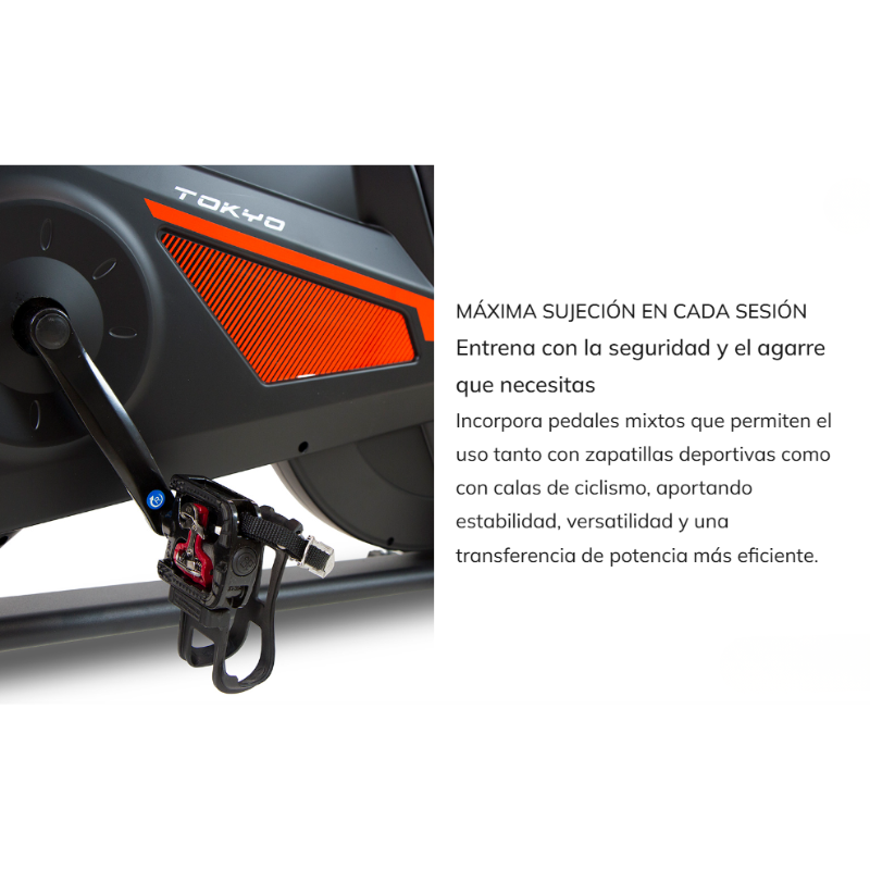- Pedali con cinghie regolabili per una maggiore stabilità.