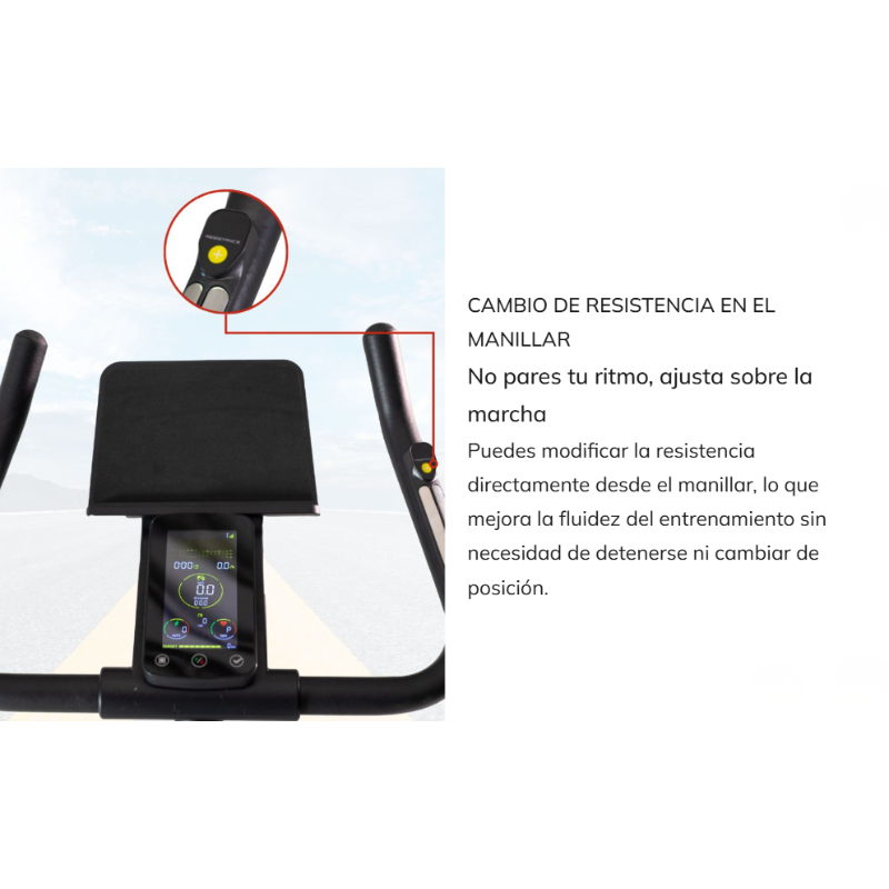 È dotata di un sistema di resistenza magnetica con diversi livelli di intensità , che garantisce una pedalata fluida, silenziosa e senza necessità di manutenzione. Dispone inoltre di un monitor LCD multifunzione che visualizza i dati di allenamento principali per un facile monitoraggio dei progressi.