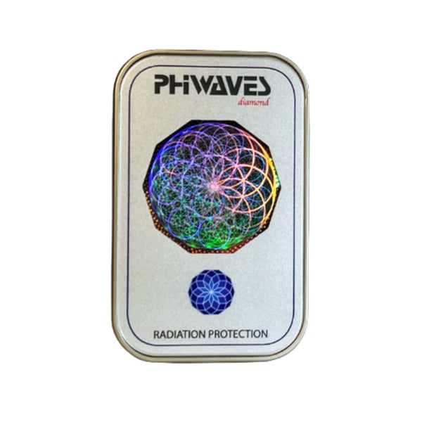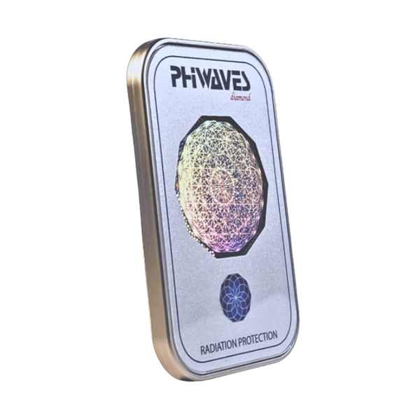 Dispositivo di protezione dalle radiazioni elettromagnetiche PHIWAVES Diamond. Dotato di tecnologia Pranan scientificamente validata. Il suo design compatto e leggero consente un facile trasporto in tasca, in borsa o nel