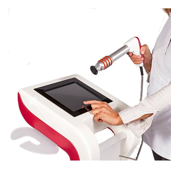 L'onda acustica viene generato attraverso il manipolo in forma di una pistola, il cui cilindro è chiuso all'estremità da un tappo metallico contro il quale viene fuso per mezzo di aria compressa, proiettili di acciaio, generando un'onda acustica propagazione dal punto di contatto con la pelle agli strati più in profondità.