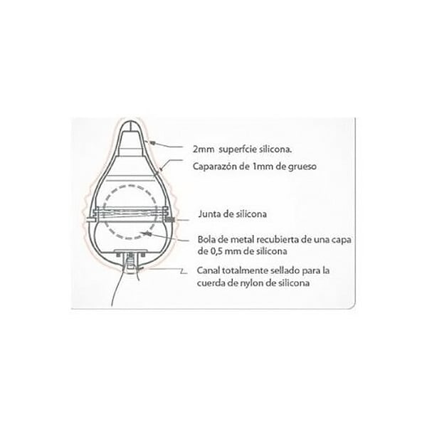 - Caratteristiche speciali: Guscio esterno spesso 1 mm. Superficie in silicone da 2 mm. Rinforzo da 1 mm. Guarnizione in silicone. Sfera metallica rivestita con uno strato di 0,5 mm. Canale completamente sigillato per il cordino in nylon e silicone.