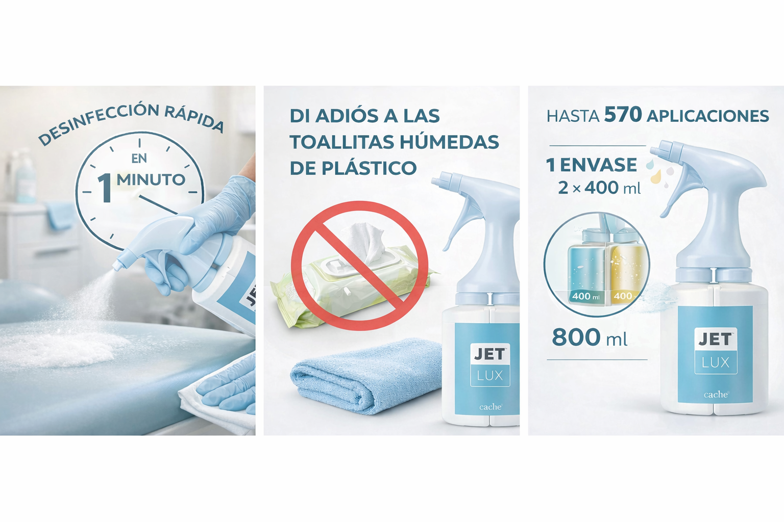 La sua formula, la più leggera della gamma JET , consente un'applicazione omogenea senza lasciare residui aggressivi, salvaguardando sia le apparecchiature tecnologiche che la sicurezza del paziente e del professionista.