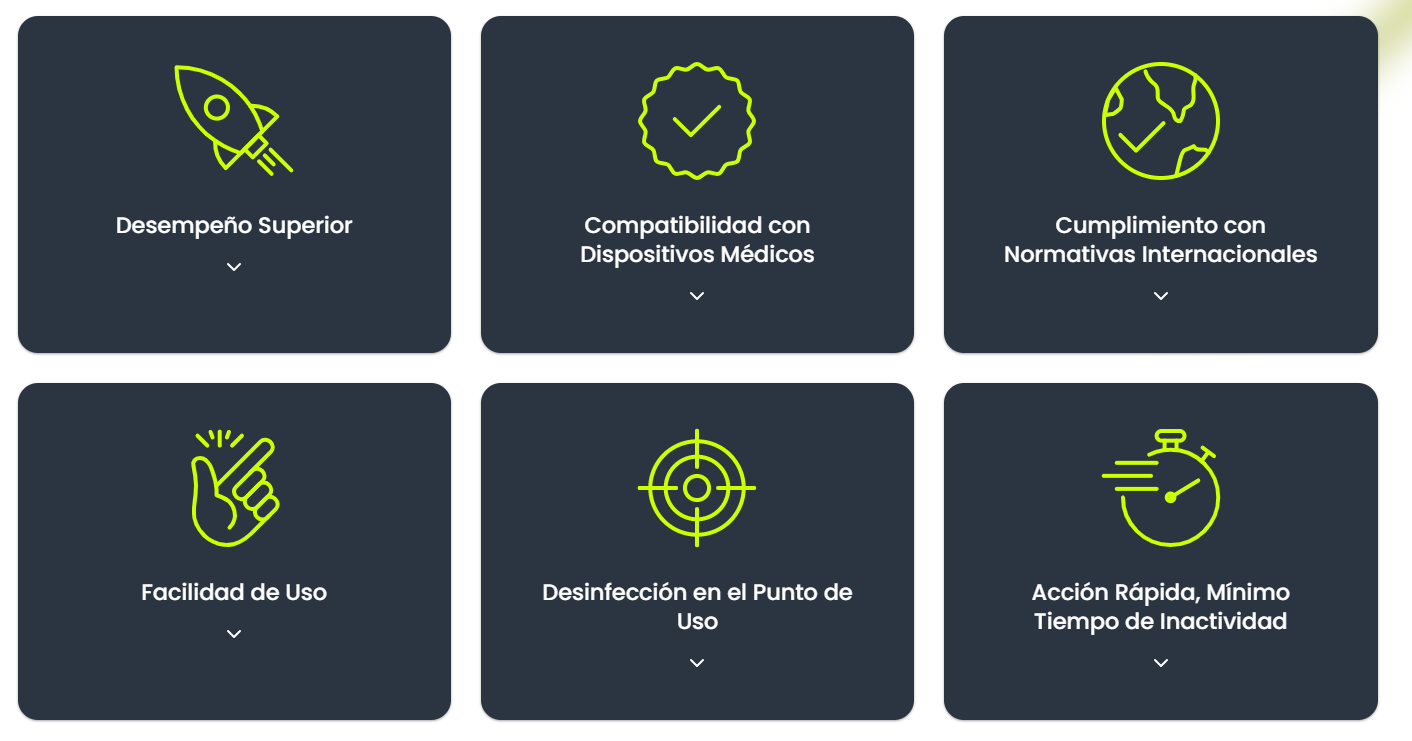 Ogni contenitore consente fino a 570 applicazioni , consentendo una disinfezione frequente, rapida ed efficiente senza compromettere i materiali o l'efficacia.