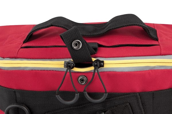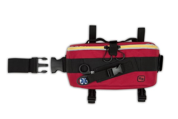 Kit di pronto soccorso vita-gamba appositamente progettato per i primi interventi in situazioni di emergenza . I suoi molteplici sistemi di fissaggio permettono alle mani di rimanere libere, offrendo soluzioni per agire su terreni di diverse orografie.