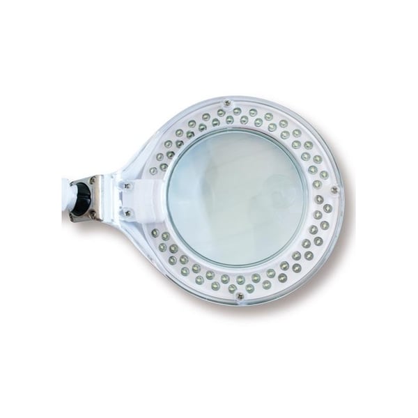 Questa lampada da tavolo con base è particolarmente adatta per l'esame di pietre o per eseguire qualsiasi lavoro di precisione . Di piccole dimensioni e dal design ergonomico , è costituito da una lente bifocale di alta qualità con 3 diottrie (1,75x) e 100 mm di diametro . Include una piccola lente d'ingrandimento da 12 diottrie (4x). Genera una luce fredda ad anello con led Daylight light senza produrre ombre o abbagliamenti. È efficiente dal punto di vista energetico e ha una bassa emissione di calore. Ha una copertura protettiva per l'obiettivo. Quando non viene utilizzata, la lente d'ingrandimento assume l'aspetto di una normale lampada dal design accattivante.
