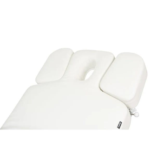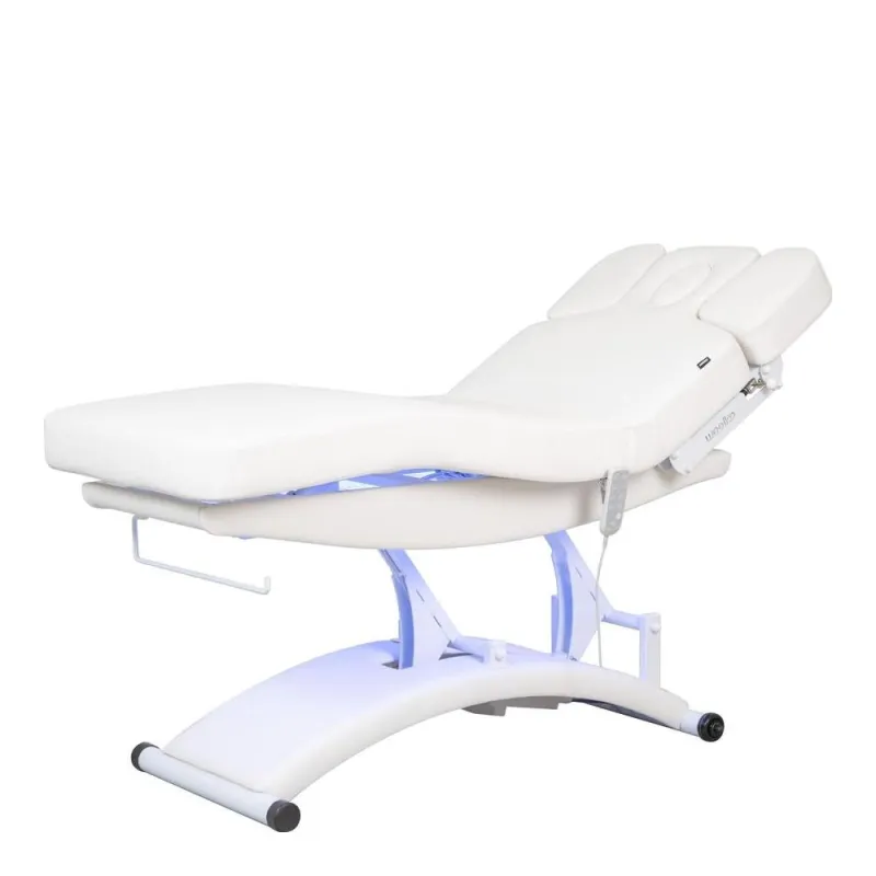 È dotato di tre motori elettrici che consentono di regolare l'altezza, l'inclinazione dello schienale e il poggiapiedi. Il materasso monoblocco a tre sezioni con 12 cm di imbottitura ultra confortevole include un sistema di riscaldamento integrato , offrendo un'esperienza più rilassante durante i trattamenti prolungati.