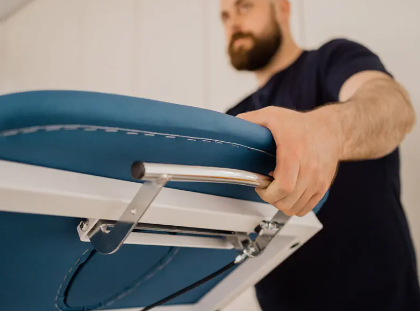 - La regolazione in altezza va da un minimo di 50 cm, ideale per pazienti in carrozzina, fino a 92 cm. Questo permette all'operatore di trovare sempre la posizione più comoda per ogni trattamento.