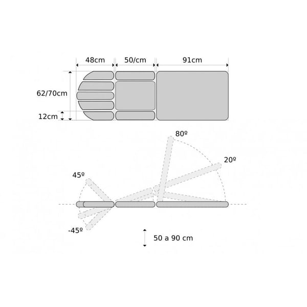- Gambe: pediera (terzo corpo) elevabile/reclinabile