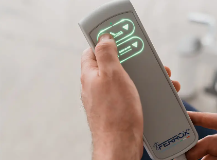 - Telecomando con blocco di sicurezza per la regolazione dell'altezza.