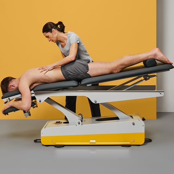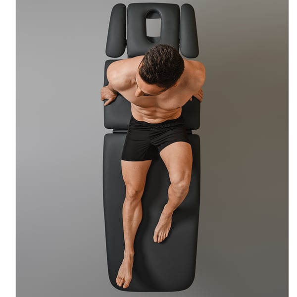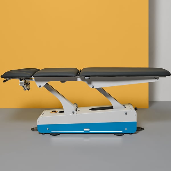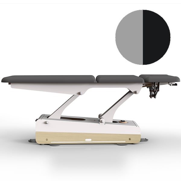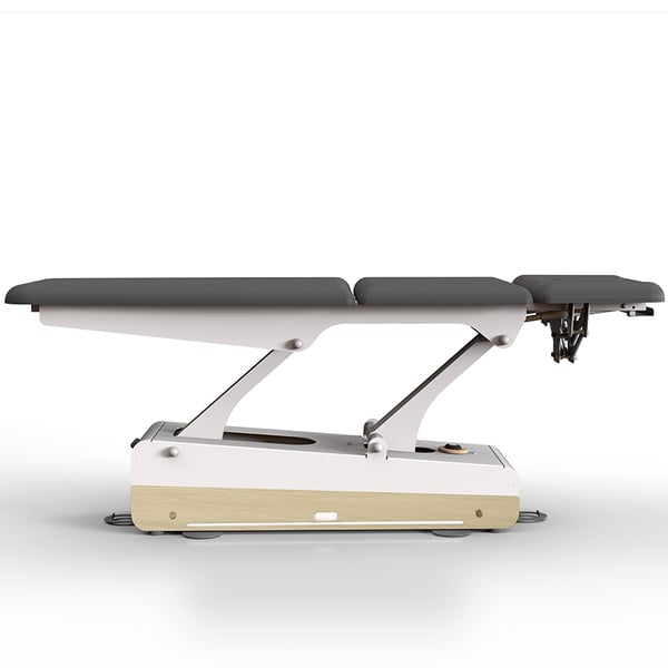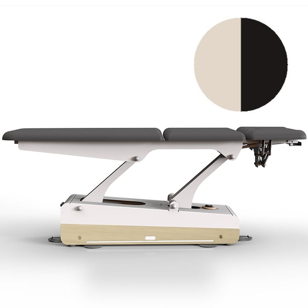 Il lettino è composto da cinque sezioni e una sezione centrale motorizzata , che consentono di effettuare trattamenti con il paziente completamente sdraiato o in posizione semi-sdraiata. È dotato di un materasso riscaldato XL , quattro ruote girevoli a 360 gradi e un sistema di bloccaggio/sbloccaggio a leva per un facile spostamento.
