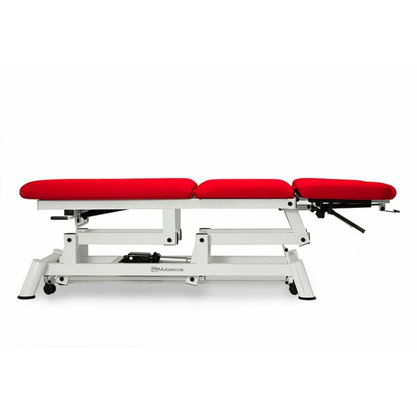 Allo stesso modo è dotato di ruote retrattili adatte al trasporto di pazienti per brevi distanze o allo spostamento della barella per effettuare il trattamento. Allo stesso modo, dispone di regolazione elettrica dell'altezza con telecomando, grazie al motore di sollevamento.