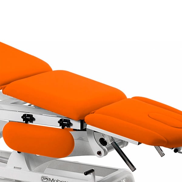 Lettino elettrico per osteopatia: tre corpi, con regolazione in altezza, schienale reclinabile negativo, Trendelenburg, portarotolo e ruote a scomparsa (disponibili due modelli)