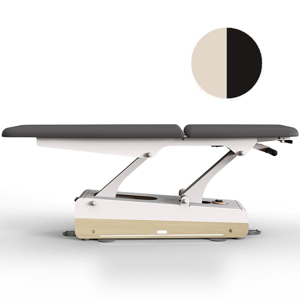 Lettino fisioterapico elettrico Swop 2L Physio: due sezioni, poggiatesta lungo, completamente personalizzabile, rivestimento senza cuciture, un modello che cambia le regole del gioco