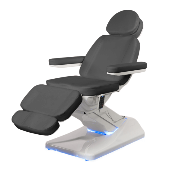 Lettino estetista professionale con 4 motori elettrici, riscaldamento opzionale e design ergonomico. Disponibile nei colori bianco, nero o grigio. Ideale per cliniche, centri benessere e centri estetici.