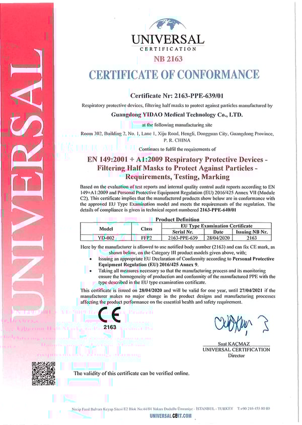 • Maschere FFP2 ragazzo / ragazza con certificato CE europeo di colore bianco (confezionate singolarmente - Scatola da 10 unità)