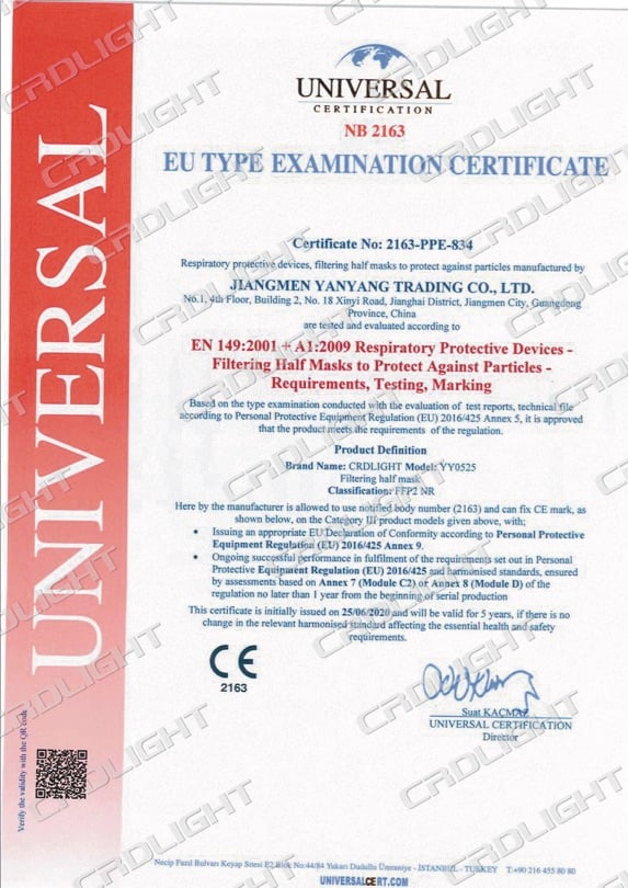 - Mascherine protettive autofiltranti FFP2 NR con certificato europeo CE 2163 EN149: 2001 + A1: 2009.