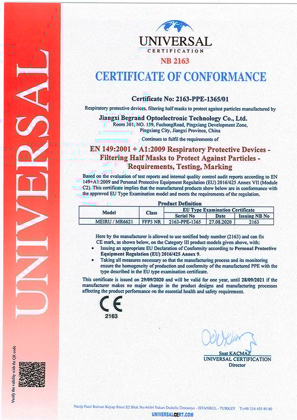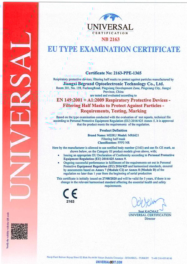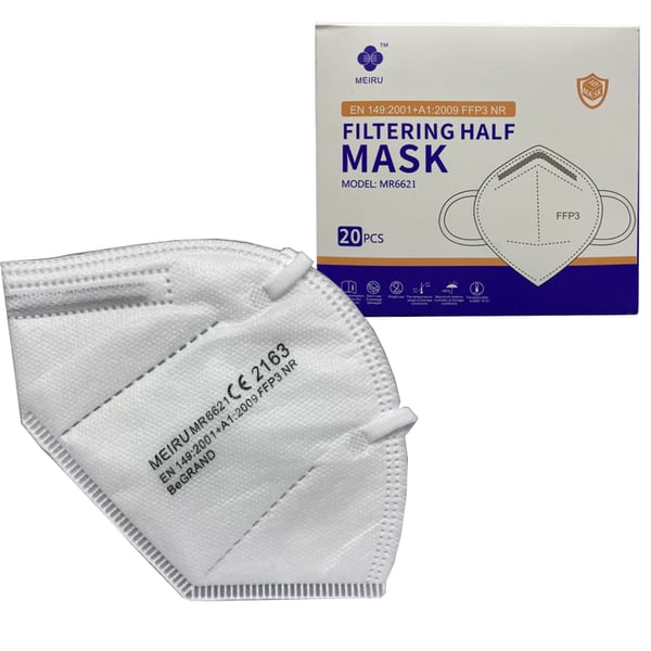 Mascherine FFP3 con certificato CE europeo (imbustate singolarmente - scatola da 20 unità)