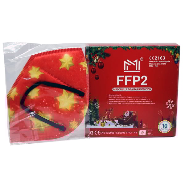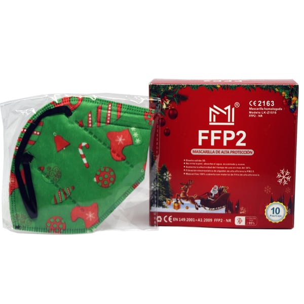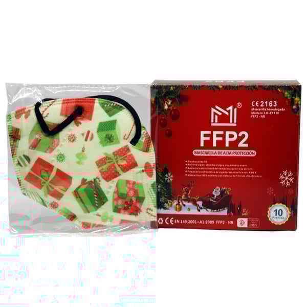 Mascherine natalizie FFP2 e certificato CE europeo (imbustate singolarmente - scatola da 10 unità)