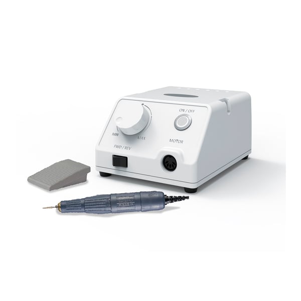 Il micromotore Marathon Escort III è un micromotore a spazzole portatile e potente . Ha un design ergonomico con una presa facile e adatta per evitare l'affaticamento durante il lavoro e un sistema di accensione e spegnimento direttamente sul supporto. Ha una velocità di lavoro di 35.000 giri/min . Si consiglia di non superare la velocità per evitare un'usura prematura del pezzo.