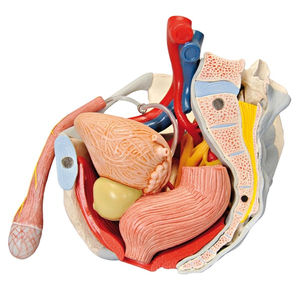 Modello anatomico del bacino maschile con legamenti, vasi, nervi, pavimento pelvico e organi (Sette parti)