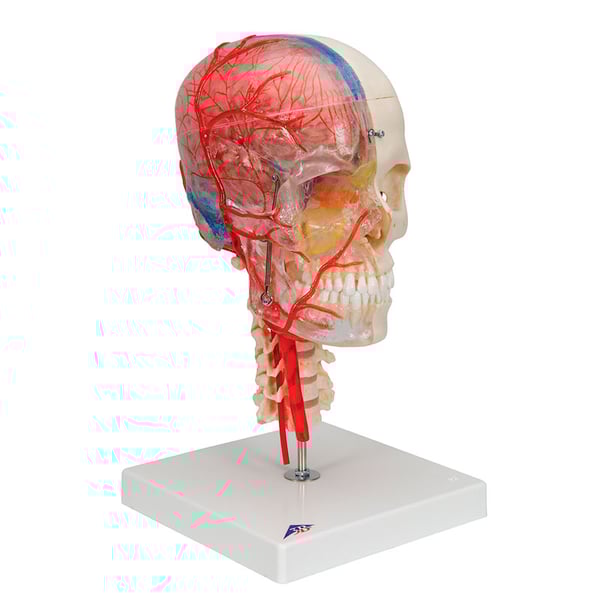Il nuovo modello di cranio didattico deluxe Bonelike chiarisce tutti i dubbi anatomici. Dà la possibilità di conoscere le strutture nella metà trasparente del cranio e le ossa nella metà ossea.