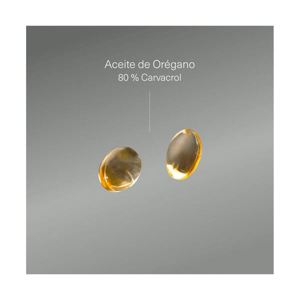 - Ingrediente principale: Olio di origano standardizzato (Origanum vulgare), ogni capsula molle fornisce 200 mg di olio con circa 160 mg di carvacrolo, che è il composto fenolico più rappresentativo di questa pianta.